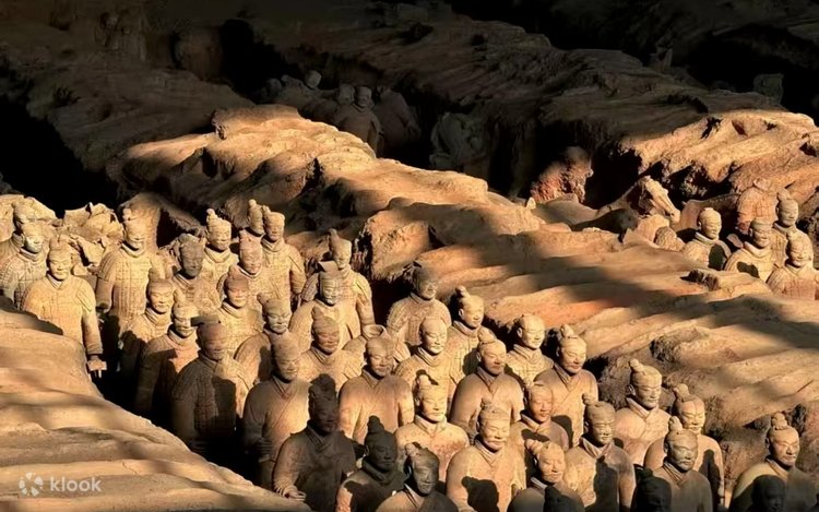 Après le petit-déjeuner : visite de l’atelier de fabrication de répliques de l’armée de terre cuite et du musée du mausolée de l’empereur Qinshihuang, abritant les guerriers et les chevaux de terre cuite (site classé au patrimoine mondial de l’UNESCO ; voiturette électrique et audioguide inclus). Ensuite, visite de la place de la Grande Pagode de l’Oie sauvage pour assister au spectacle des fontaines musicales.