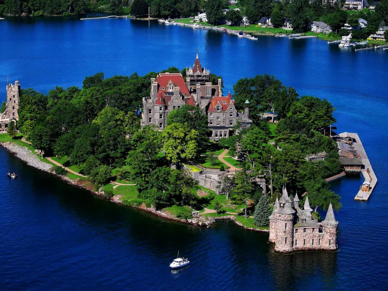Archipel des Mille îles -- Les Milles Îles est un archipel sur la frontière entre le Canada et les États-Unis. Les 1864 îles s’étendent environ sur une superficie de 80 kilomètres.